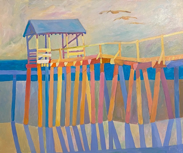 "Where the Muse Takes Me" by Jo Patton, playfully depicts the ever-changing shadows of pier pilings.